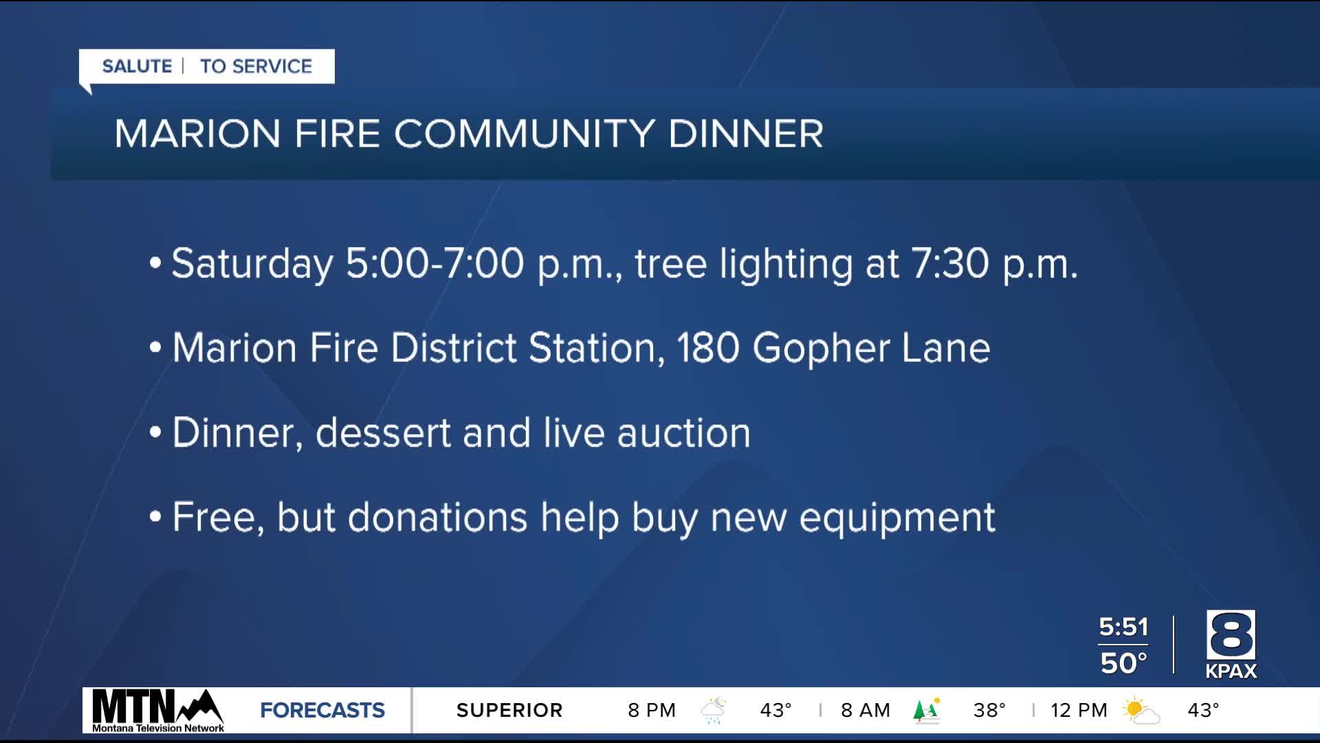 The fire department says donations from the dinner help them buy new equipment.