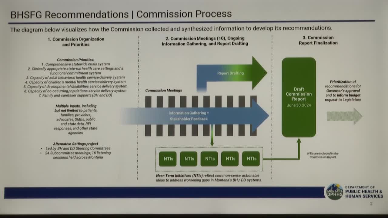 House Bill 872 — the bill that created the commission and set aside $300 million for the behavioral health system — required commission members to present their recommendations to state lawmakers before completing their report to Gov. Greg Gianforte.