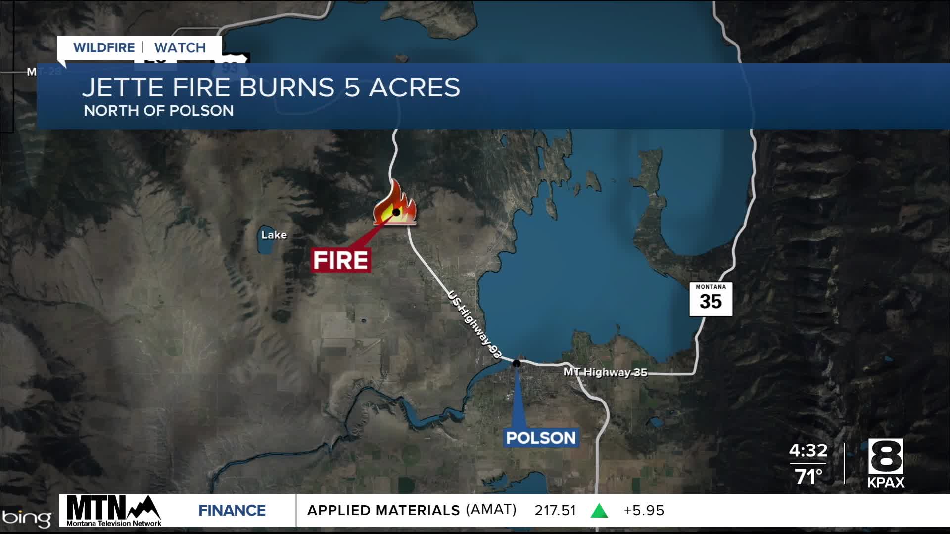 The Jette Fire, which broke out north of Polson on Wednesday afternoon, has burned five acres.