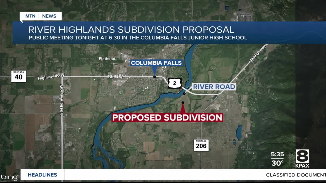 The proposed River Highlands Development is located on River Road in Columbia Falls along the Flathead River.
