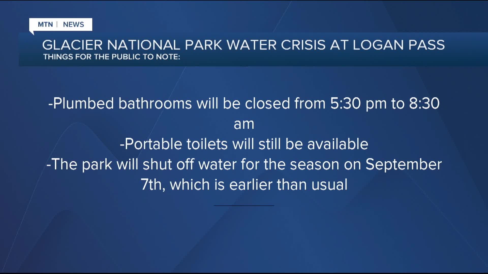 WEST GLACIER - Glacier National Park reports Logan Pass is currently experiencing low water levels, resulting in a water supply that can't support the number of visitors the area receives daily.