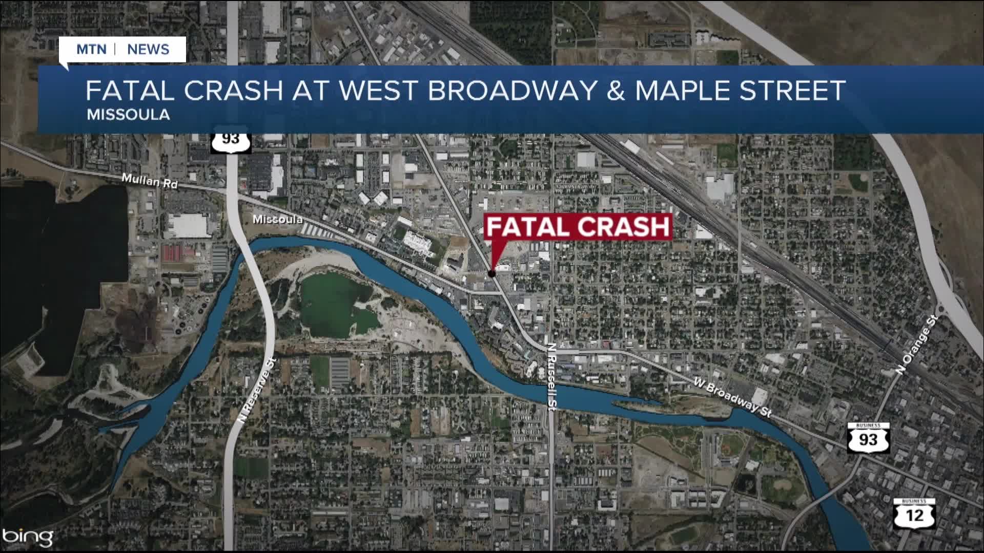 MISSOULA — A 32-year-old motorcyclist died from a crash with a van at the intersection of West Broadway Street and Maple Street shortly after 1 p.m. on Saturday, according to the Missoula Police Department.