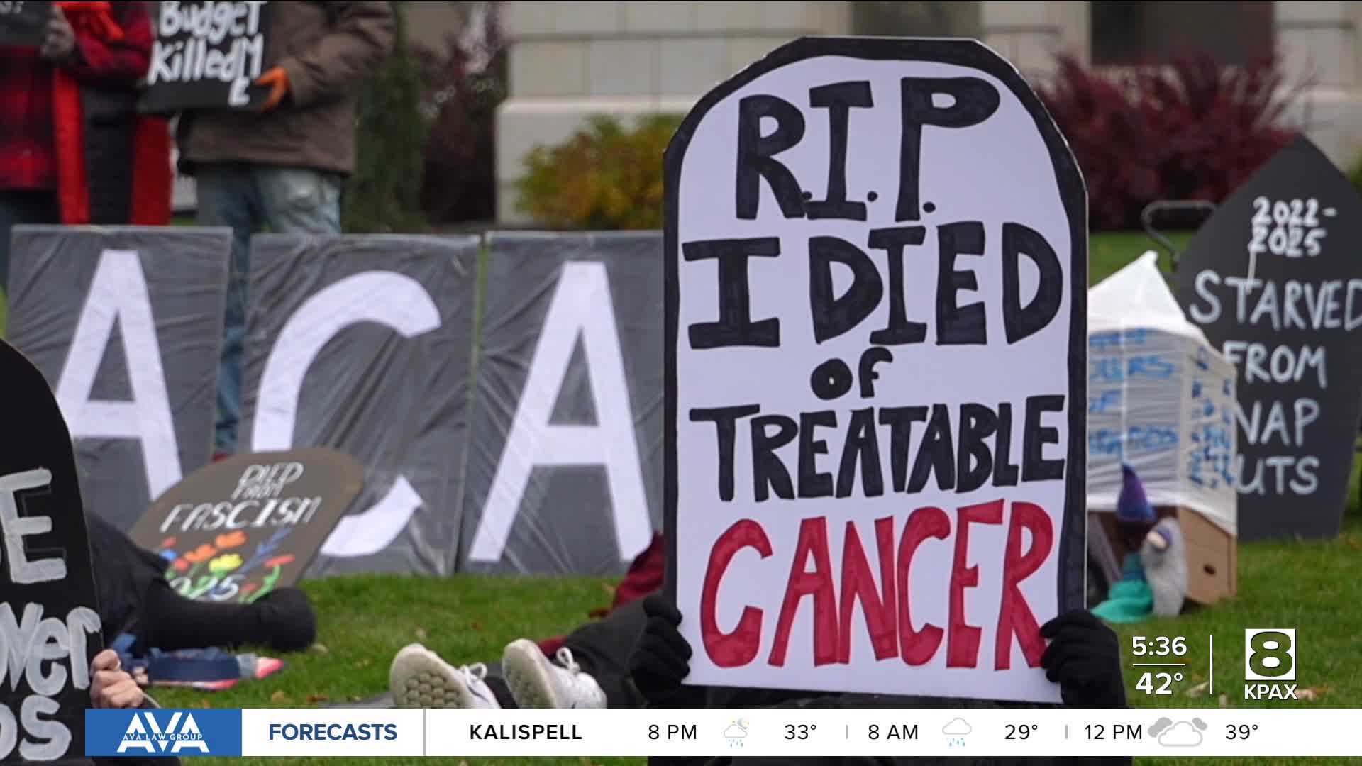 MISSOULA — Protesters took to the Missoula County Courthouse lawn on Tuesday to rally against the Trump Administration's potential health care cuts.