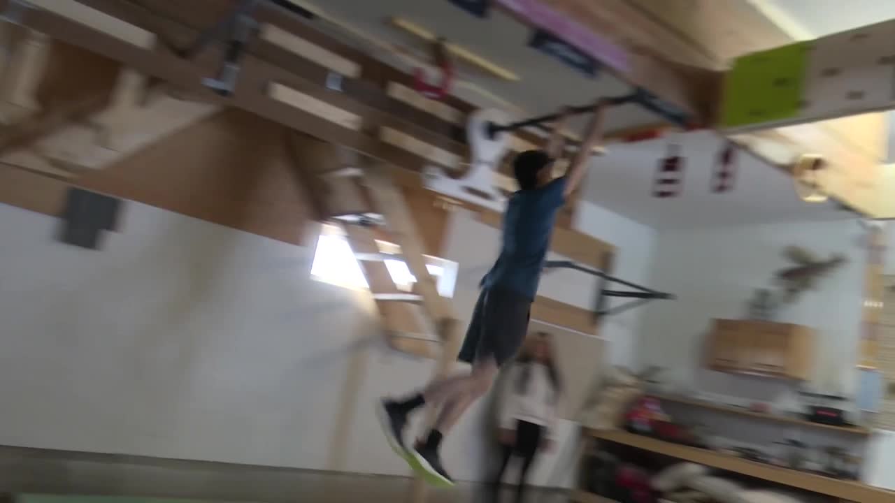Gradually, his father and grandfather built a gym, especially for ninja warrior training in their garage.