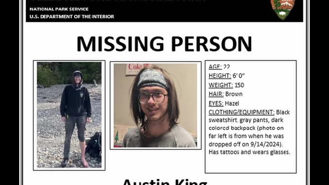 Austin King, 22, was hiking on a solo, seven-day trip to Eagle Peak near Old Faithful last week when a storm hit. King called his friends and mother from the top of the peak on Tuesday, but he hasn't been heard from since.