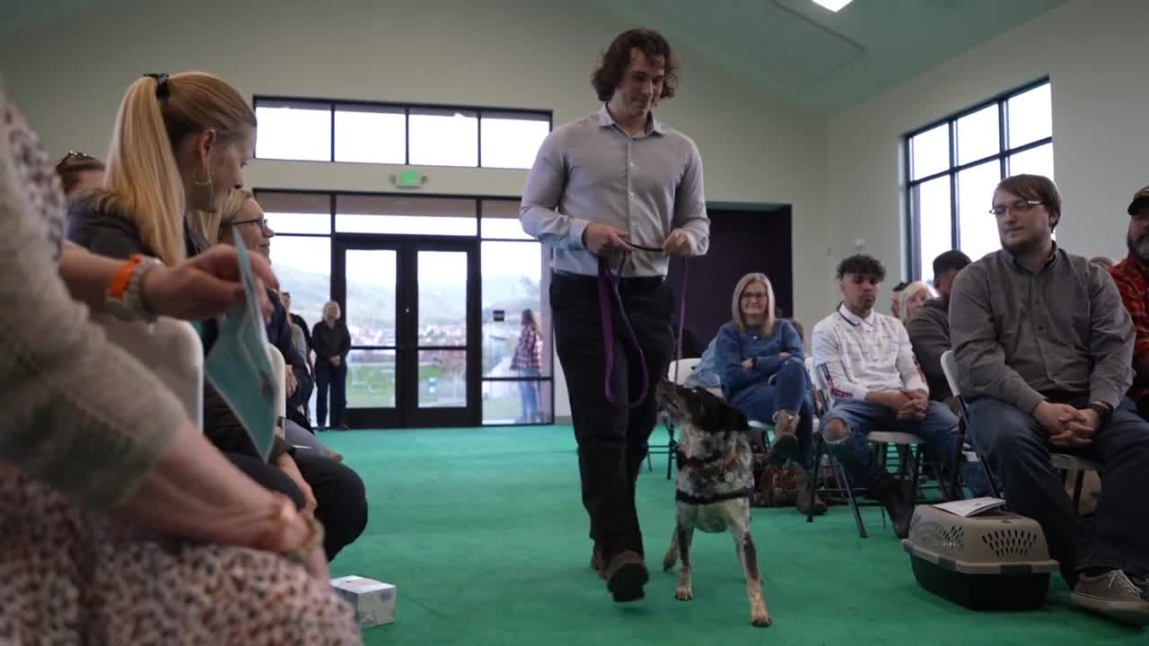 Keela the dog came to the program as a puppy and was officially adopted on Friday evening.