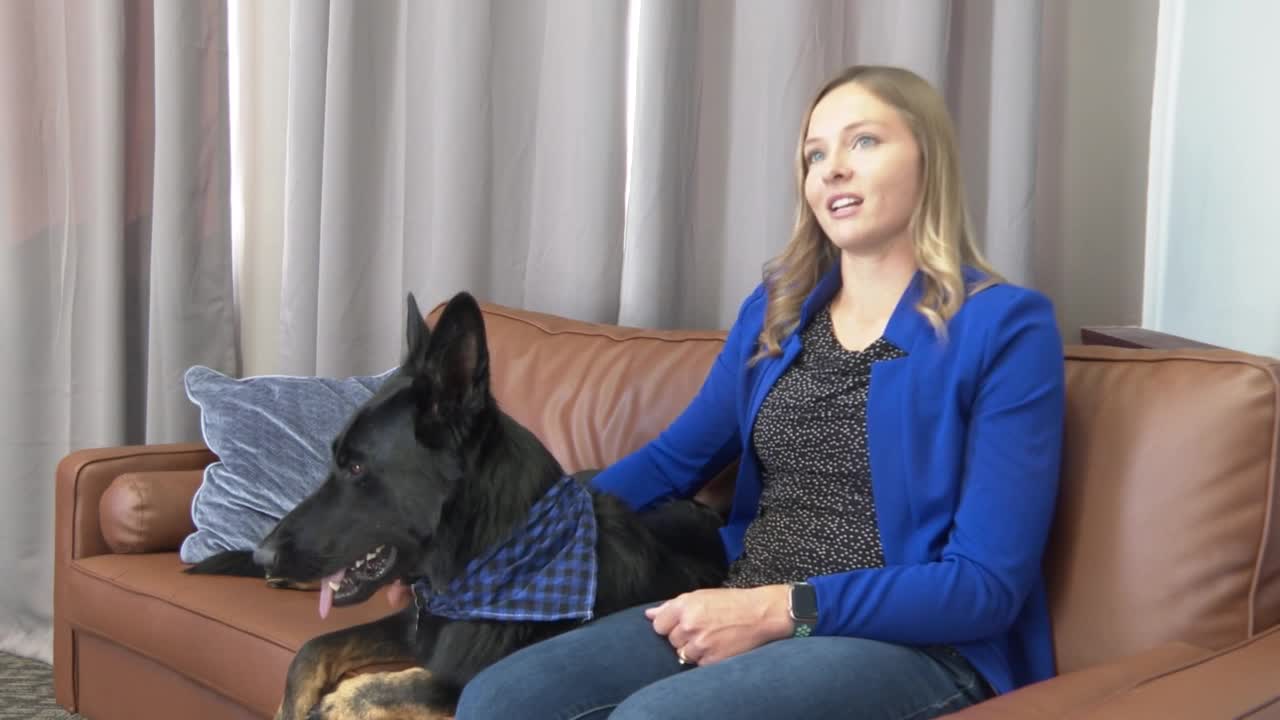 "I usually have a couple clients a day. I bring him in, and he just hangs out in the room. He usually falls asleep on the floor," Schneider said. "We are working on behavior, but otherwise, he's doing pretty good and getting used to it."