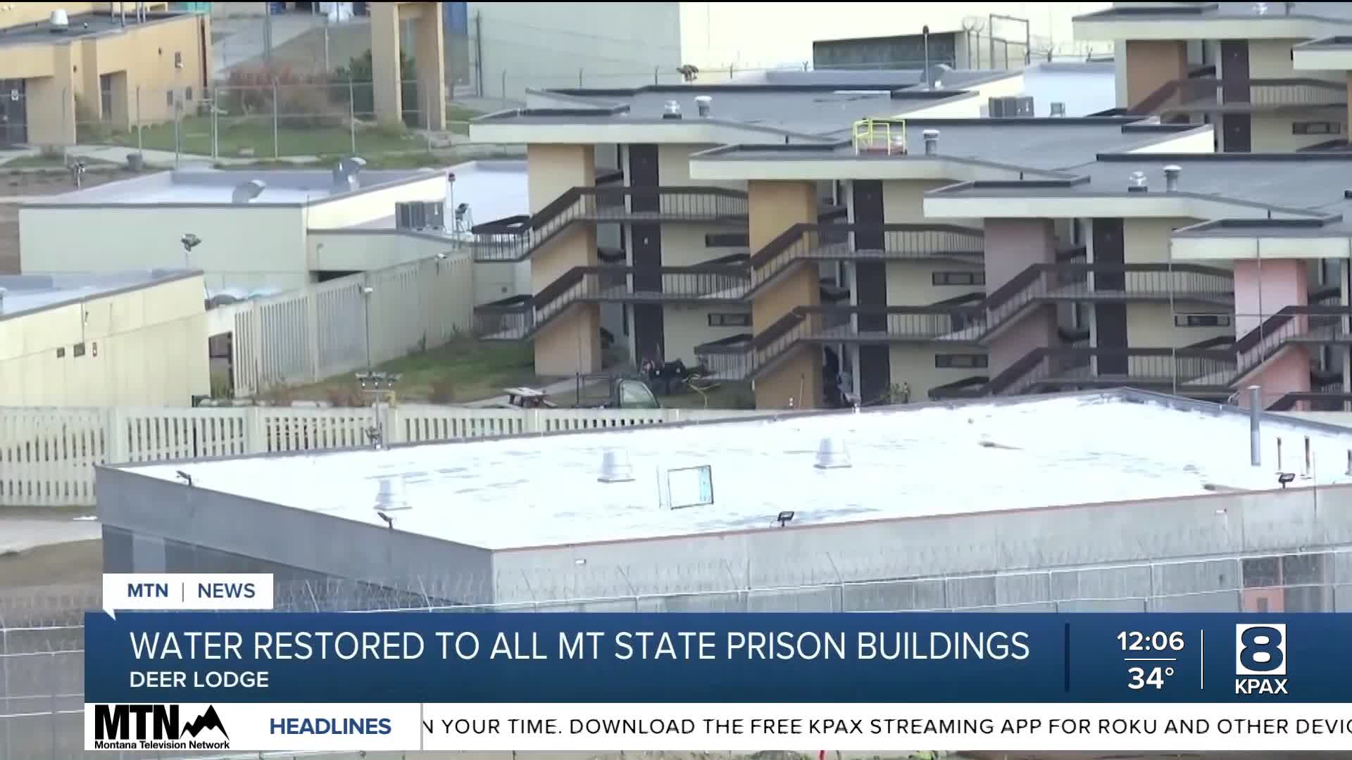 DEER LODGE — Water service has been restored to nearly all buildings at Montana State Prison after a two-week outage that left inmates without working showers, toilets and sinks, officials said Friday.