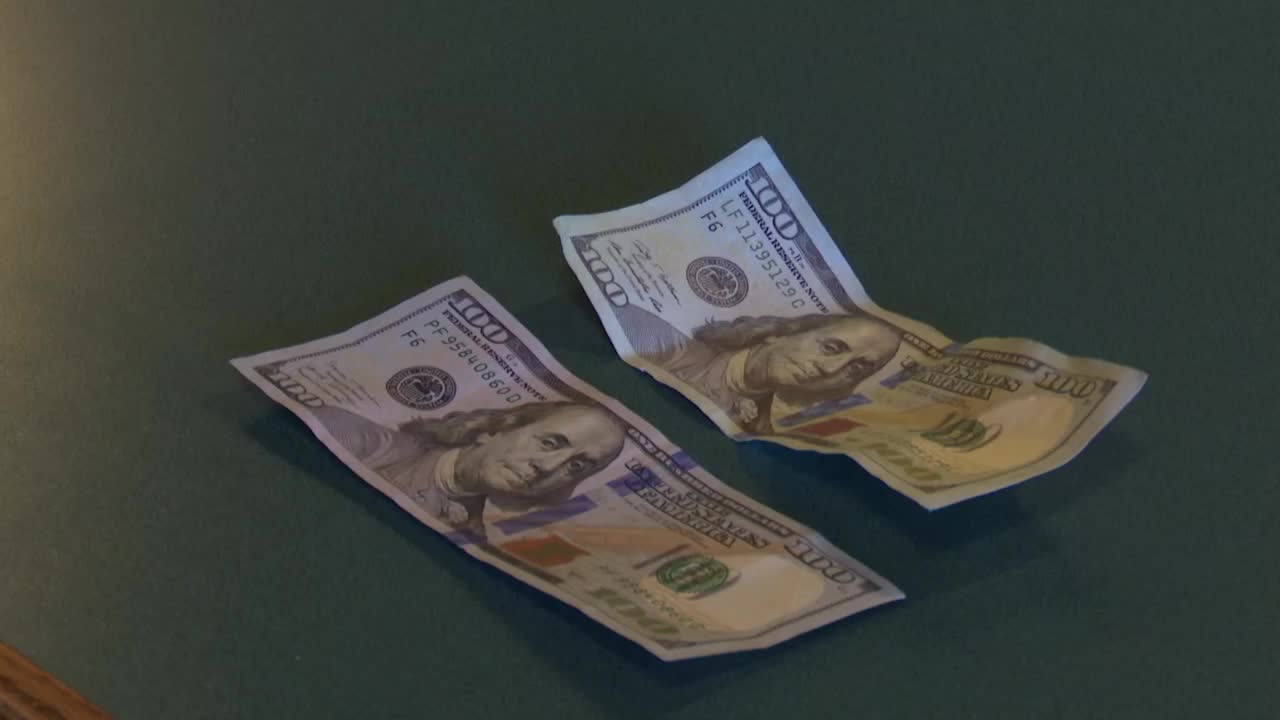 “We’ve collected in total 42 (bills),” Lennick said. “They have no watermark, and the blue line is not the same as what a real hundred-dollar bill is.”