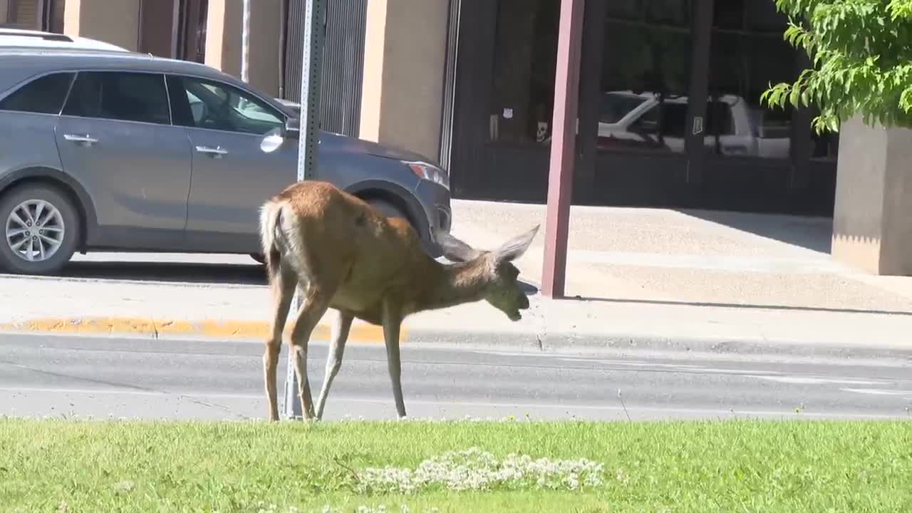 “You can’t hardly drive a block or two without seeing one of those mule deer running around town. Something has to be done I just think for everybody’s concern, both people and the animals themselves,” said Scot Conrady who owns Thompson’s Bar.
