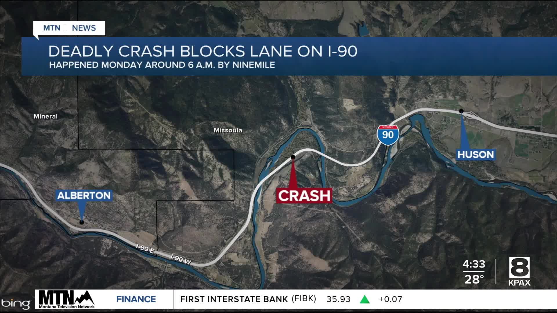 MISSOULA — A deadly crash on Monday morning blocked some lanes on Interstate 90 near Ninemile.