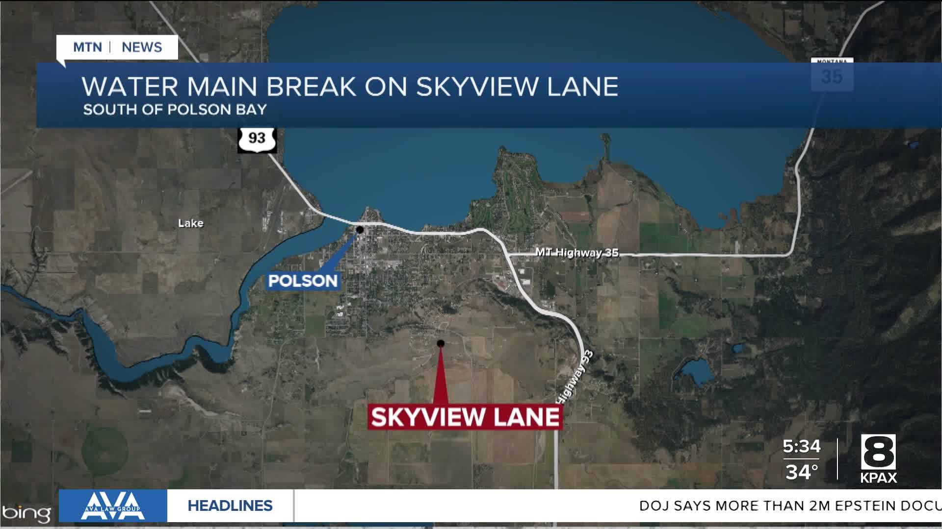 A water main break on Skyview Lane has left residents in two Polson subdivisions without water service on Tuesday evening.