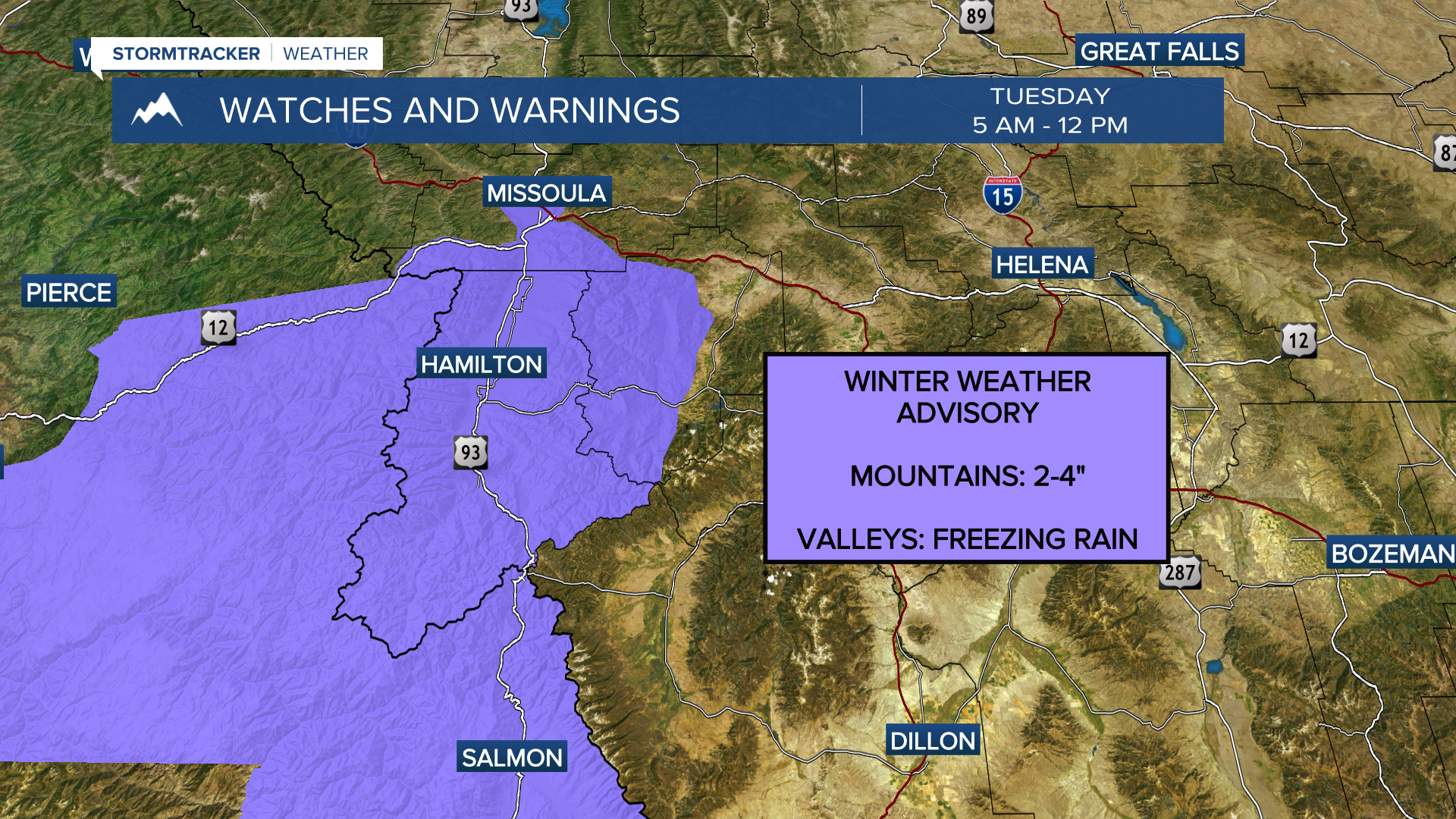 Weather Forecast: Mountain snow & valley rain/snow Tuesday