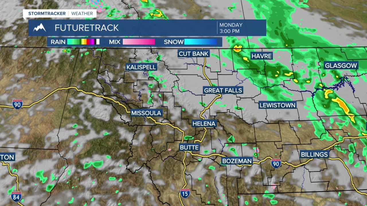 MISSOULA — Expect another round of rain showers and perhaps an isolated thunderstorm Monday. Off and on showers will be possible through the day, but most widespread during the morning. Expect some sunshine for west-central and southwest Montana this afternoon.